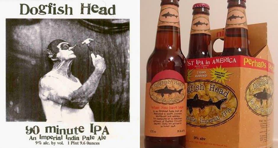 It’s no secret that we’re obsessed with beer art around here. While searching latest designs to hit the market, we stumbled upon something neat: A retro label showing what Dogfish Head’s 90 Minute IPA looked like when it first launched in bombers 12 years ago.