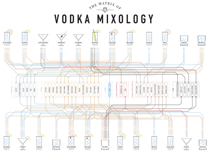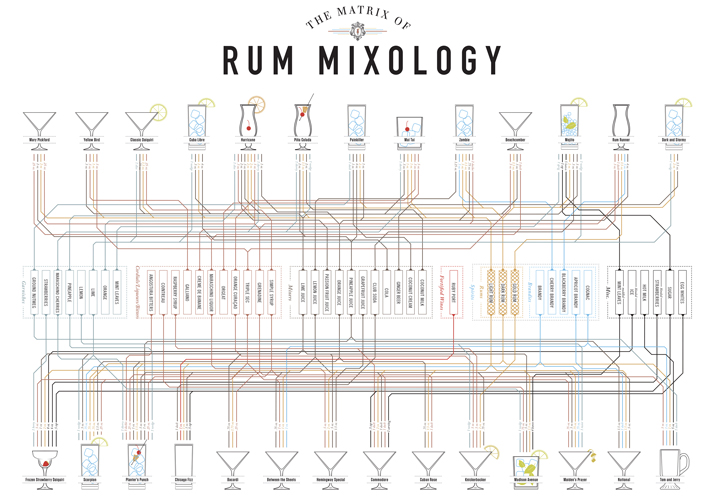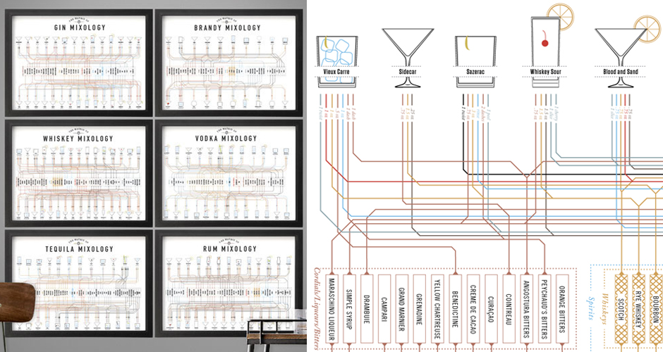 You can order each print in the Matrix of Mixology series individually ($20 each), together in a box set ($108), or as a single canvas print on the Pop Chart Lab website ($100). That’s more than 150 classic cocktail recipes—from the Tom and Jerry to the Martinez—diagrammed across 9 square feet.