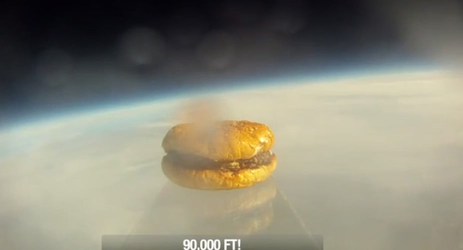 There’s really not much we need to say about this video, except that it is awesome. Glad to see that Harvard kids are living up to their reputation by experimenting with burger space travel rather than butt-chugging.