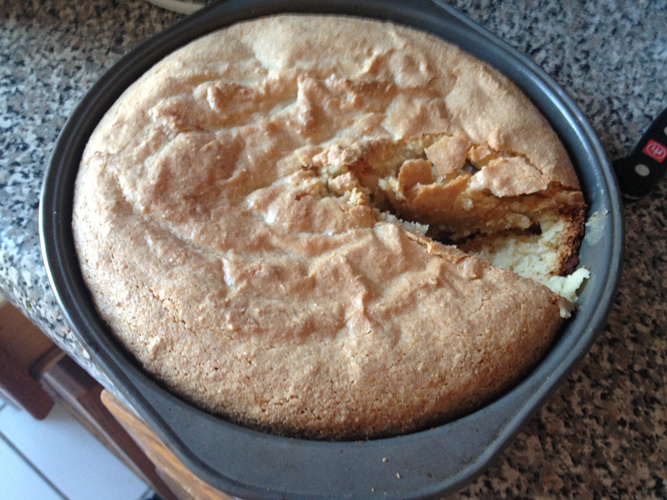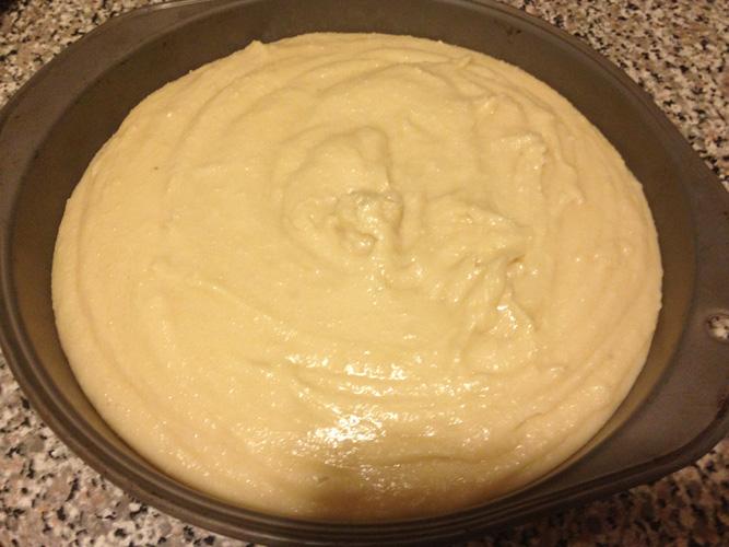That quickly turned the mix into less of a dough and more of a batter, so rolling it out and leaving it alone for 24 hours wasn’t really going to work. I decided to roll with it, and the whole thing went into a cake pan in the oven at 350 for 45 minutes.