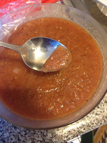 What resulted is what could be generously called “tomato applesauce.” My fiance entered the house remarking that it smelled like cider, but when it was done refused to even try it because it apparently looked like the elementary school cafeteria tomato sauce that convinced him he hated lasagna for most of his childhood.