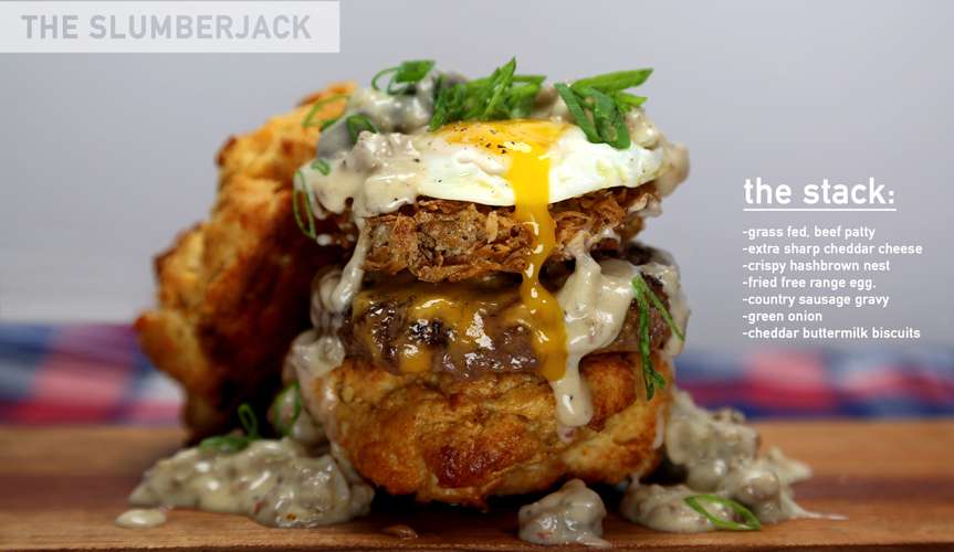 Pictured burger: The Breakfast Burger at Roosevelt’s Tamale Parlor. (“If it were a designer, it would be Alex Trochut.”)