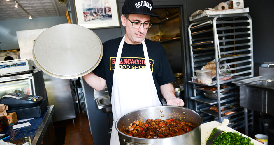 Joe Brancaccio opened Brancaccio’s Food Shop five years ago in Windsor Terrace, Brooklyn, near to where his Italian grandparents lived when he was a kid. The 600-square-foot prepared foods store offers whatever Brancaccio feels like cooking that day—soul-satisfying dishes like $6 rotisserie chicken, cavatelli bolognese, and an eggplant caponata sandwich layered with eggs, fresh ricotta, and tender broccoli rabe.