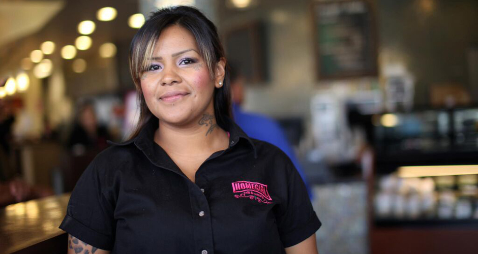 Alvarenga started as a baker at Homeboy Industries in fall of 2007, and quickly moved up to sous chef of catering at Homegirl Café. Since then, the Homeboy staff helped her file divorce papers, retrieve her son from social services, and remove a tattoo.