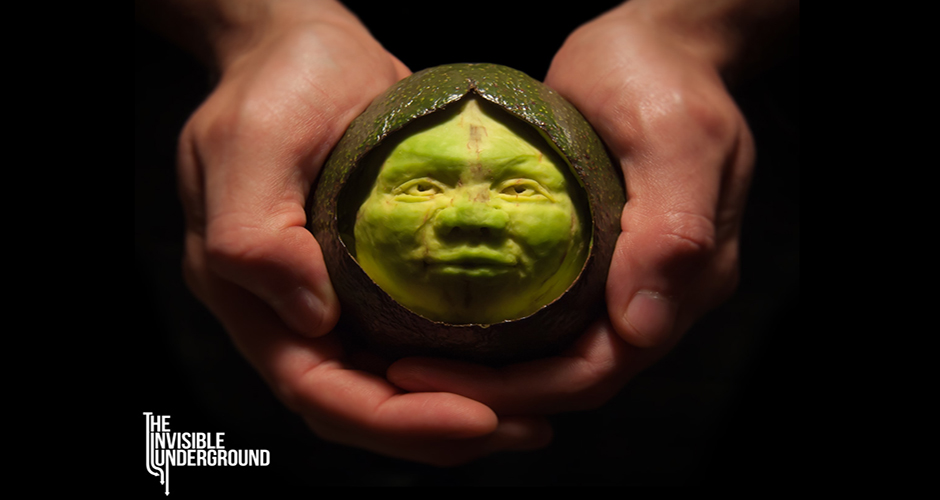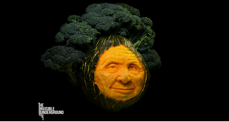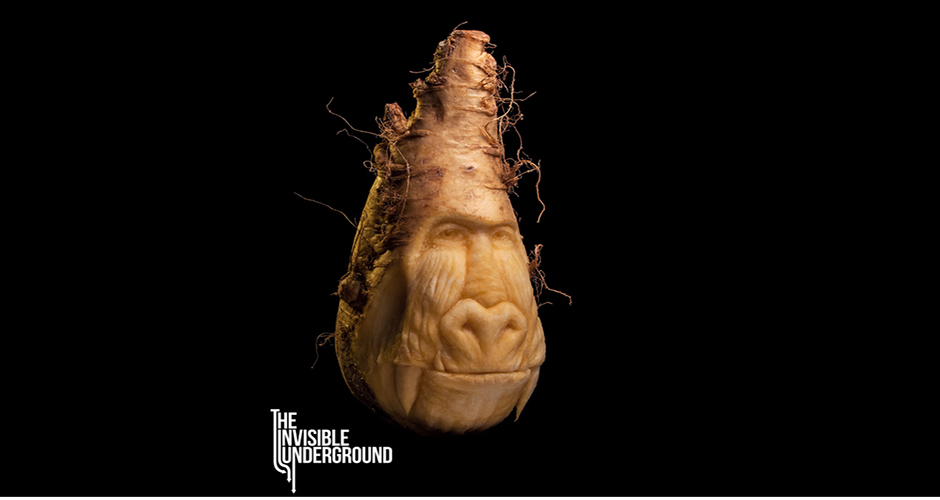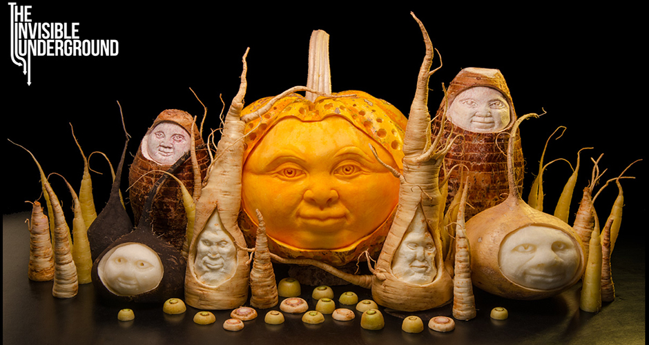 On The Invisible Underground website, Feeney writes that the series reveals “the secret vitality and character concealed within the organic material of our carvings.” Feeney, who studied forensic facial imaging with the FBI, often lets the food decide what it wants to become, which could be anything from a baboon to an alien. You can commission installations, centerpieces, and live demonstrations through The Invisible Underground‘s website.