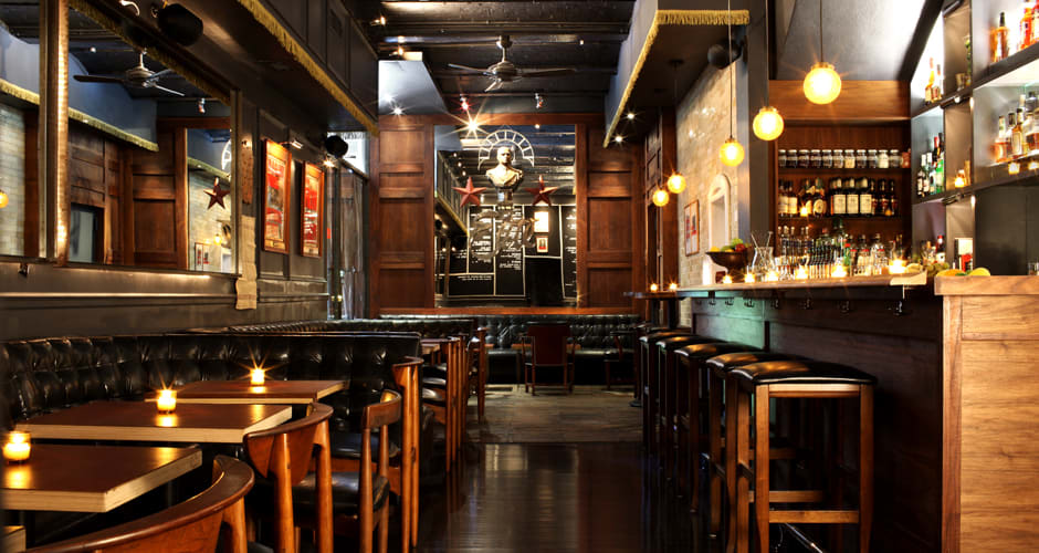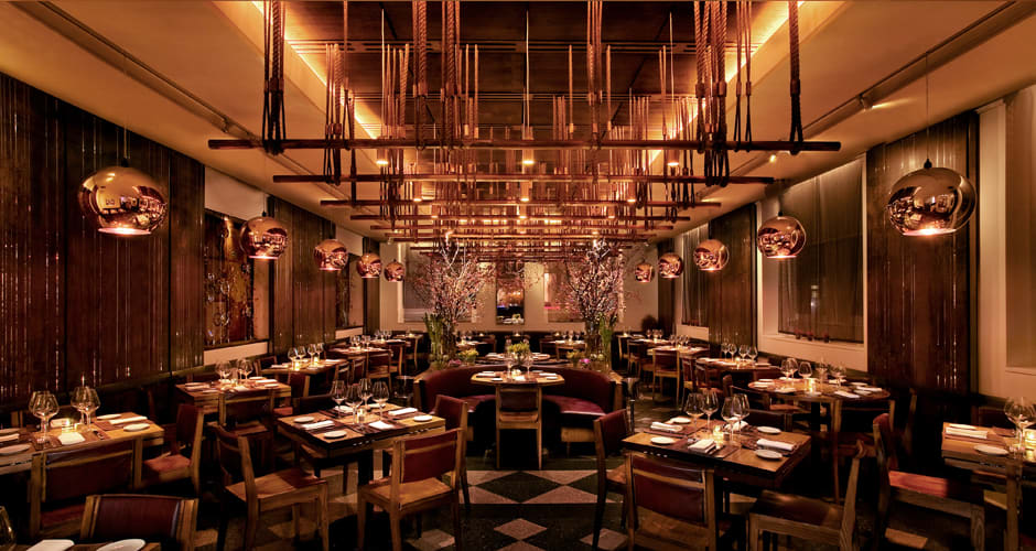 To get a better sense of how they tackle these ambitious design projects, we asked them to share some insights into their process and inspiration. Here, take a look inside ten restaurants and bars that span New York, San Francisco, and Hong Kong, showcasing eye-catching elements like a wall of meat cleavers, a chandelier wrought of barnacles, and horseshoes hanging from the rafters.
