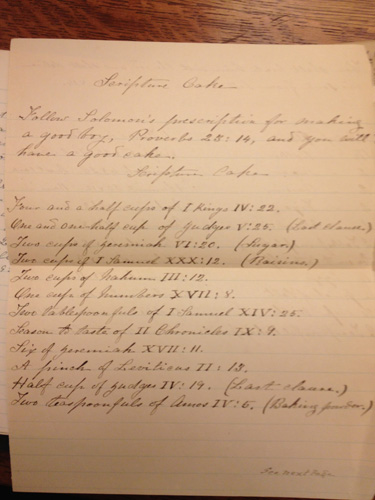 Let’s say you want to teach your kids how to bake, but you also want to make sure they think about the Bible while doing it. Solution? Scripture Cake, a puzzle of a recipe that requires the baker to remember verses of the Bible to successfully make it.