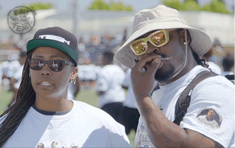 His rock-solid reasoning for this move? “My auntie fried up some chicken and I had my hands full, and I don’t have no pockets on my shorts, so I just had to use what I had,” he told Maxim.