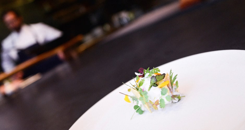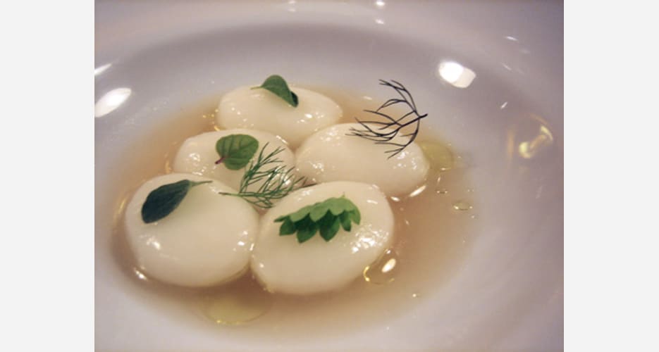 Today, the two-Michelin-starred Atera has done the best it can to echo the experience of sitting on the rolling hillside of the Basque country in the concrete wasteland of Tribeca, with a living wall of herbs dominating the dark room lined with reclaimed barn siding, and dishes presented on stones or nestled in moss. Though there’s no elderly farmer on a bicycle and Lightner rarely gets out into the forest to harvest his own wild herbs anymore—as he did often in Portland—the city’s Greenmarkets provide all of the local ingredients necessary to maintain that sense of connection to place. Lightner pays homage to a Spanish mentor with dishes like the beet ember, a single beet slow-roasted for hours and grilled until it looks like a lump of coal, and ups the ante with his own sleight-of-hand, like a “razor clam” that guests are invited to eat shell and all (turns out the shell is a baguette meticulously dyed with squid ink).