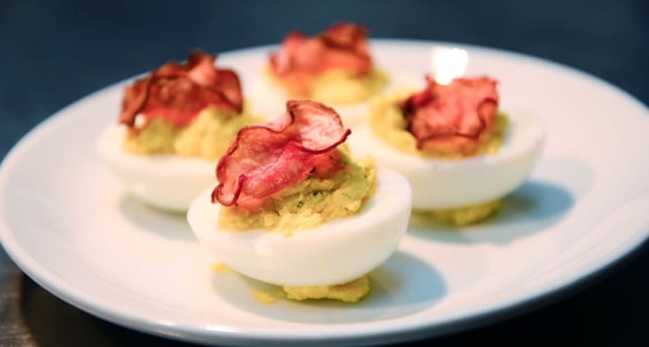 Dive-bar dreams may seem like an unlikely starting point for a chef now known for running one of NYC most ambitious modernist kitchens, but the more Lightner talks about the foods that excite him, the more it’s clear that the impulse to make people happy is at the heart of his cooking, under the layers of complex techniques and foraged ingredients. It’s the emotional thread that connects the “quail egg” at Atera (aioli and milk gel that’s formed in the shape of an egg and pickled, served as one of the pre-meal snacks) to the deviled eggs of a Midwest childhood.