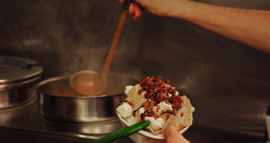 We’ve often dreamed of combining poutine—essentially Canadian nachos, let’s be real—with a more traditional base of tortilla chips to create a South of the Border-Great White North hybrid of epic proportions, but we needed some pro guidance. And it just so happens that smoked-meat poutine nachos are on the list of top five family meals at the Mile End Deli spinoff in Manhattan, along with braised chicken with salsa verde, frittata, chicken shawarma with homemade pita, and “anything breakfast for dinner.” The poutine nachos were first created by Mile End Deli head cook Eduardo, and Mile End Deli sous-chef Josh Sobel was kind enough to walk us through the step-by-step process of making this mashup masterpiece.