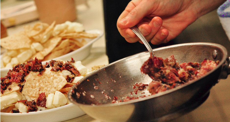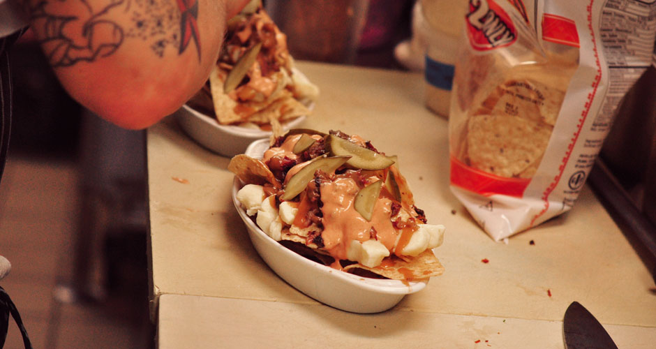 Today is a very important day for mankind: In 1975, the creator of nachos, Ignacio “Nacho” Anaya, shed his mortal coil and henceforth October 21 was declared the International Day of the Nacho in his honor. And what better way to celebrate International Day of the Nacho, we thought, than by making some smoked-meat poutine nachos with the pros over at Mile End?