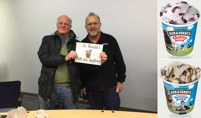While Ben Cohen has previously done a Reddit AMA, yesterday’s AUA was Jerry Greenfield’s first time. Although they sold the company to Unilever in 2000, Ben and Jerry still have a lot of creative control over the ice cream and corporate culture parts of the business. For example, the dress code didn’t suddenly start requiring everyone to wear suits—a thought that probably just seems wrong to Ben & Jerry’s fans.